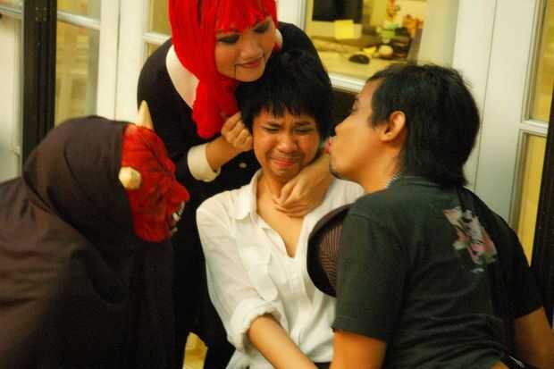 Utilizar la sombra de ojos marrón negro oscuro para crear sombra fina de perilla o cualquier tipo de vello facial que desee. Solo ponerlo suavemente en su cara, no obvio. Y luego usar el delineador negro para hacer pequeños puntos, como desordenada barba sin afeitar. Mezcla ligeramente con el dedo. También poner en algún delineador alrededor del ojo para profundizar en los ojos.