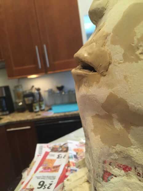 The face wasn't particularly easy. Y cara Sr. Peanuts está lejos de ser perfecta, pero creo que resultó bien. Usé una arcilla de papel en la cara, pude arena lisa y que la cara parezca es parte de la cáscara y no un complemento en. Una vez que la arcilla de papel se dry(2days) I orbital había lijado con lija de grano 150 y luego utiliza masilla de epoxi para rellenar las grietas grandes. La nariz, también se hace con masilla epoxi y en forma. Labios y los dientes también están hechos de masilla epoxi. Los dientes eran muy difíciles, ya que no hay mucho espacio para trabajar con, pero con un poco de paciencia y herramientas pequeñas, se puede hacer. Los agujeros de los ojos estaban cubiertos con piezas de plástico que se cortan de una botella de agua, en forma y luego deja secar en la arcilla de papel para mantenerla en su lugar.