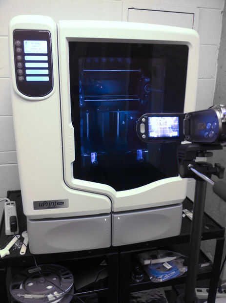 Impresora 3D utiliza es uPrint plus sistema de dimensión (véase la página web del fabricante). Su tamaño máximo de impresión (tamaño de la paleta de base y altura) es de 8 "x 8" x 6 ". La impresora parece tamaño pequeño gabinete con ventana de vidrio de un vistazo.