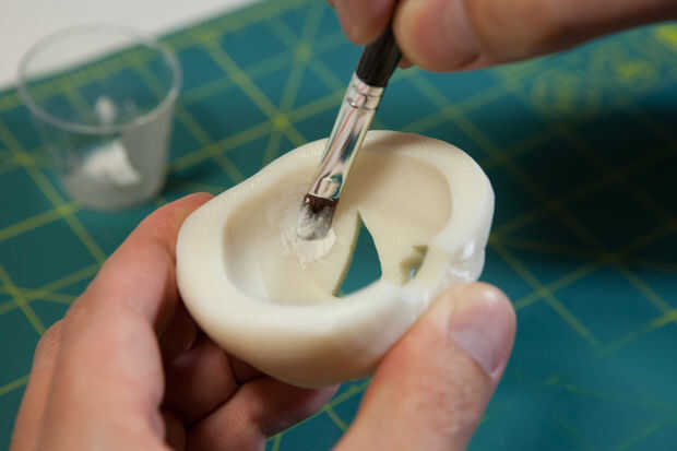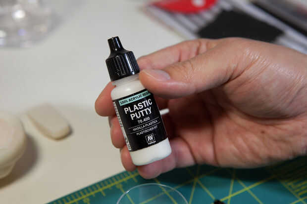 Masilla de plástico también ayuda a llenar la costura visible sobre la parte encolada (cabeza y cuerpo). Aplique masilla de plomería alrededor de la costura y arena otra vez. Serán invisible después de la pintura.