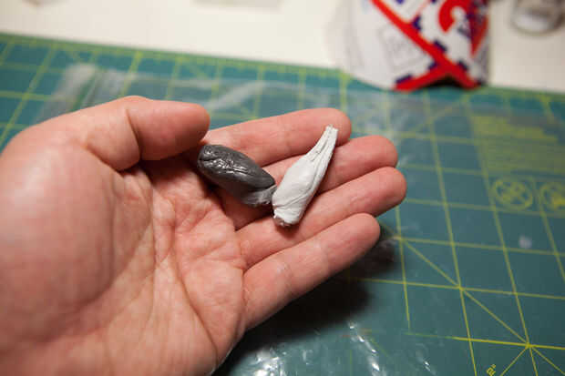 Masilla de epoxy es consiste en dos tipos distintos de material, resina y endurecedor. (ver oscuro y blanco en la imagen). Mezclar bien, poner una pequeña cantidad en un agujero y pegar la pieza firmemente.