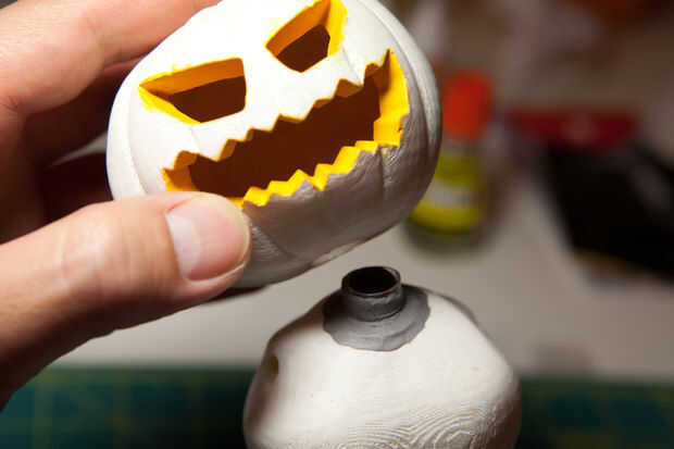 Sobre todo, fijar una cabeza en la parte del cuerpo era post modelado. Había sólo agujeros en cada parte teniendo en cuenta el cableado de luz LED.