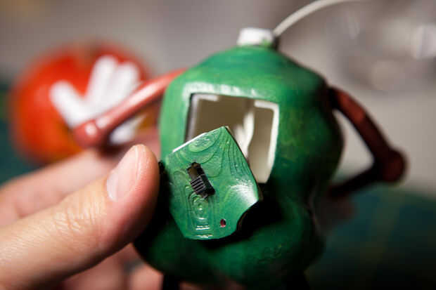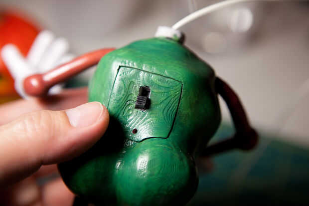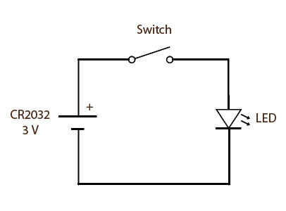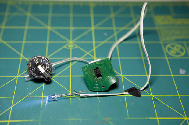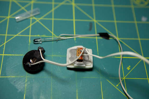 Pega un pequeño interruptor en el panel de interruptores y cables soldados a un receptáculo de la pila CR2032.