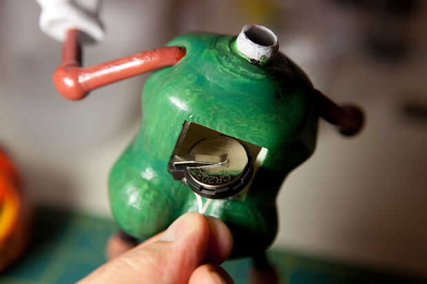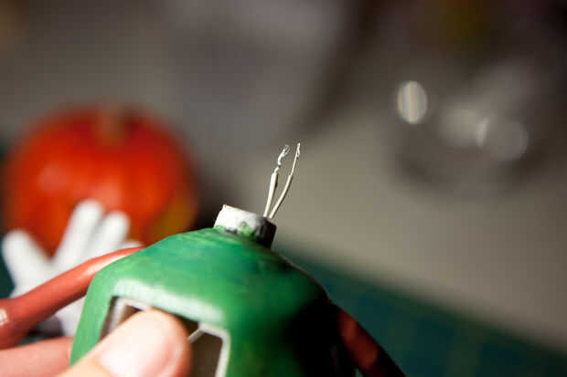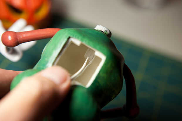 Necesito una luz de LED interior al pumpkinhead. Completa el concepto de halloween al pumpkinhead. La solución más sencilla es utilizar un pequeño LED brillante. Con batería de botón, gadget de LED throwie estilo es fácil suficiente (véase la segunda imagen del diagrama de LED throwie) encontró un soporte de la batería buena y el pequeño interruptor de tienda radioshack local.