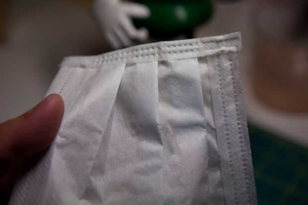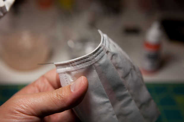 El diseño original usaba una especie de caída de hojas alrededor de ella, pero pensé que puede parecer extraño con tono pastel acrílico coloreado cuerpo. Efectivamente yo quería algo sencillo construir. Por lo tanto, miré a mi alrededor mi placard y baulera cajas suelen poner todas las cosas de diversos en el país. Whala, había uno que podría funcionar, máscara de Earloop. Lo compré cuando era mortal gripe hace años (utilizados para el viaje internacional :)).