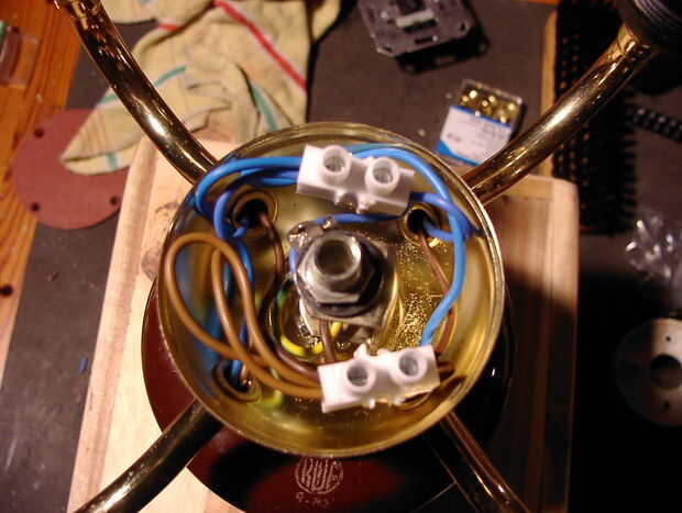 Desde la parte superior de la lámpara está dividido en los cuatro brazos de la chandeleer.