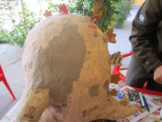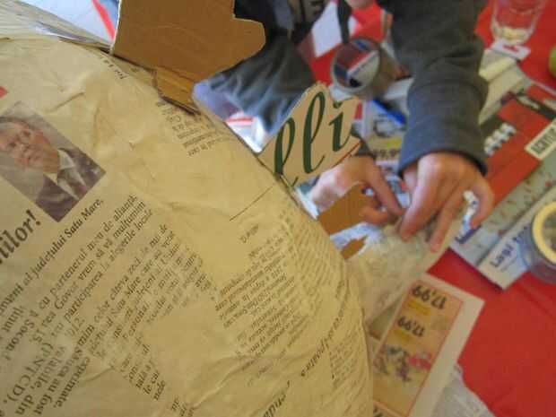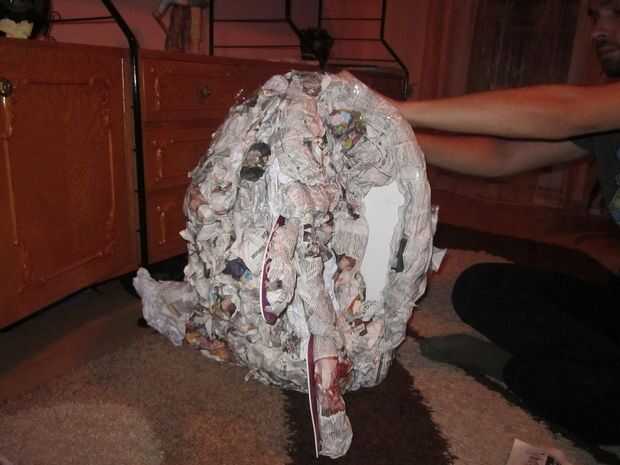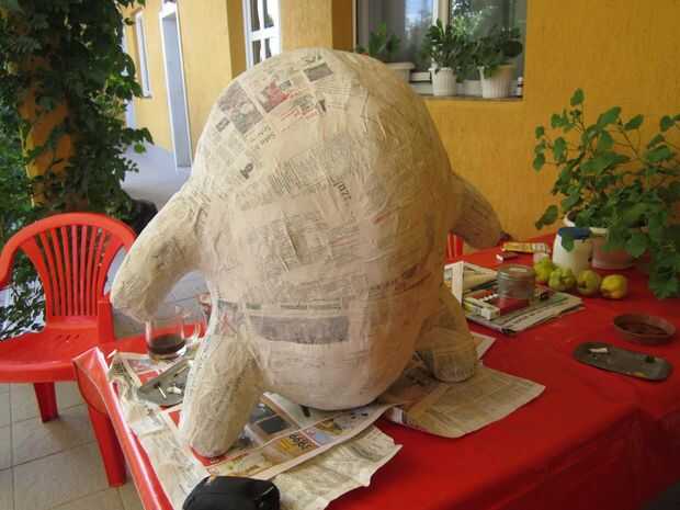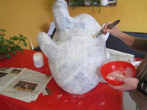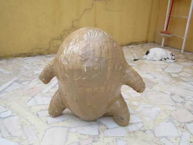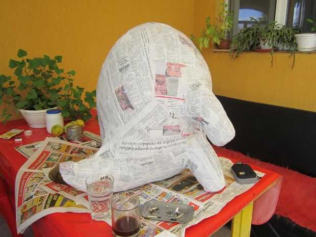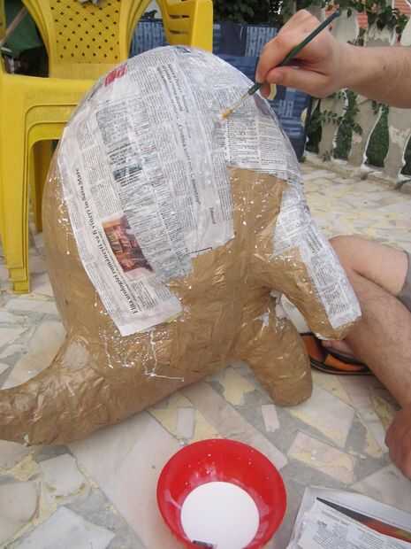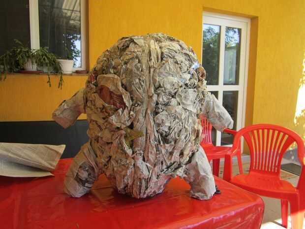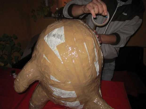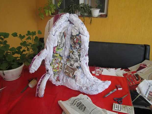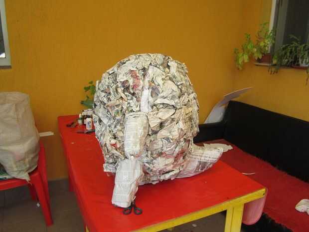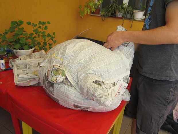 3. Iniciar llenado con periódico arrugado hasta llegar a la forma básica de su futuro compañero.