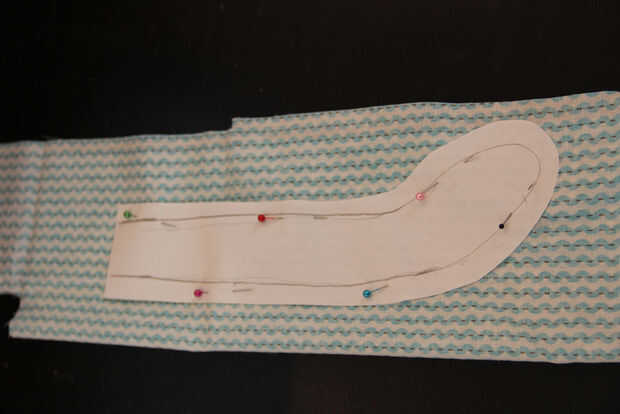 - Dejando los alfileres en la tela, retire el patrón y corte justo dentro de la línea del marcador. Ahora tienes tus dos piezas