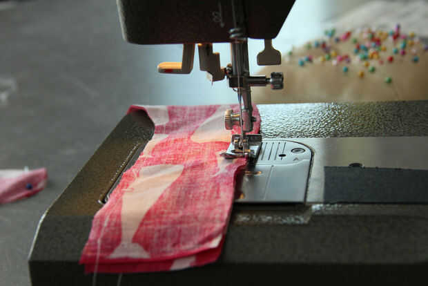 • Una vez que las patas se recortan ellos prender tocar de espalda con espalda (con lados).  Coser los bordes dejando los lados superiores.