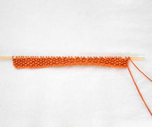 Filas 1-6: (K1, P1) a la última puntada, K1