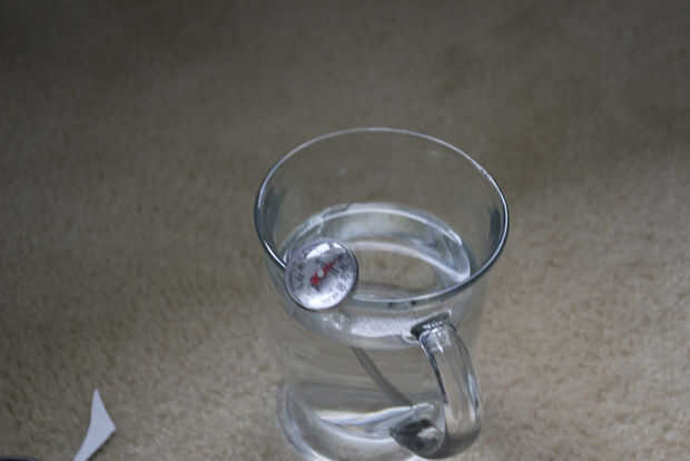 tomar una taza de agua y calentarse en el microondas y calentar el agua a 120 grados f