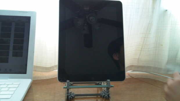 el producto terminado (arriba)La necesidad de un rápido y sucio iPad stand hecho estallar para arriba, así que tomó un par piezas de desecho Plyboo y gritó algo hacia arriba.TechShop en Menlo Park (www.TechShop.com) tiene una gran cantidad de herrami