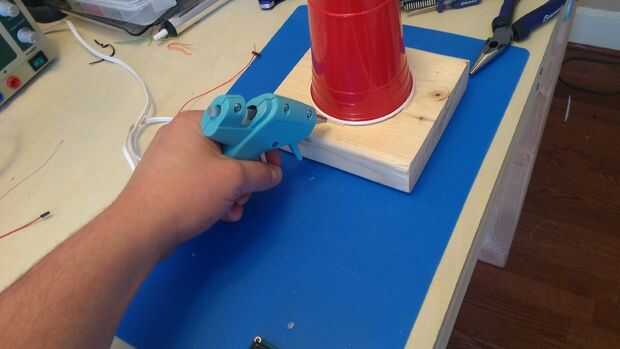 Calentar la pistola de pegamento caliente y prepárate! Pegar la Copa a su lastre.
