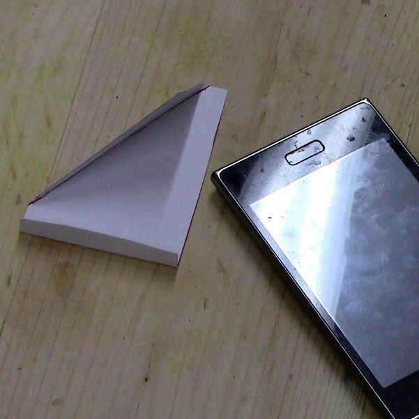 se necesita:-cartón-tijeras-cintaPaso 1: Paso uno: cortar la forma. En primer lugar, cortar una forma similar a la foto, (la puede cambiar según tu teléfono/tableta) y luego corte la parte inferior. (se muestra en la figura 2)Paso 2: Paso dos: Del pa