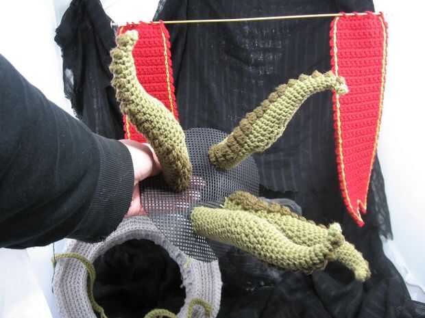 Tack el plástico lona anillos en el interior del círculo de Summoning ganchillo.