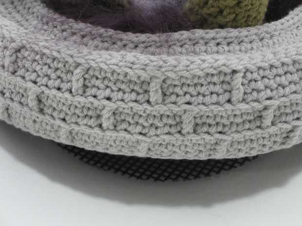 SC en 5 rondas, o el número requerido para adaptarse a la diferencia entre el interior y anillos externos, aumentando uniformemente hasta el mismo número de puntos utilizados en el aro exterior