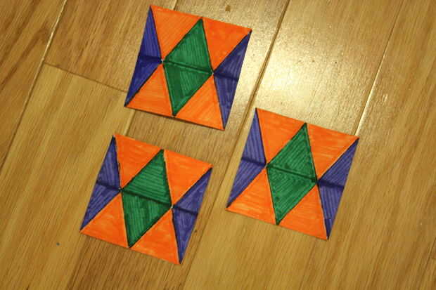 Entonces, (si quiere) cada una de las plazas que reúne aproximadamente lo coloreado de color. (diamante grande en el medio, triángulos en el lado, etc.).