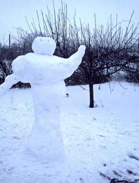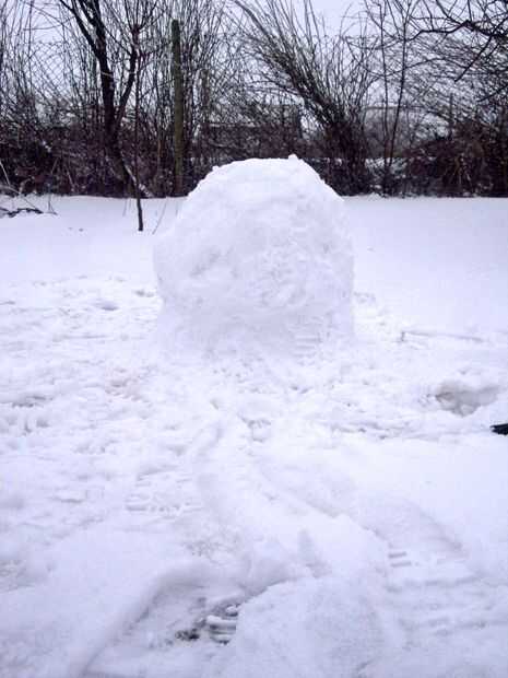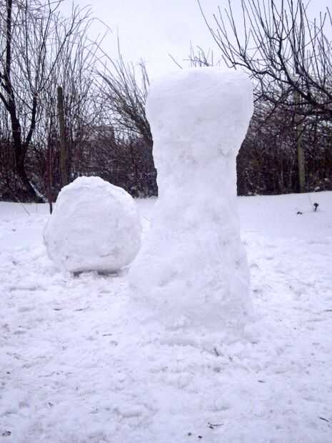 En primer lugar, hacer una bola de nieve grande aproximadamente tan alta como las rodillas. Luego hacer otro (un poco más pequeño), ponerlo y juntar las bolas, amontonar la nieve entre ellos bien.