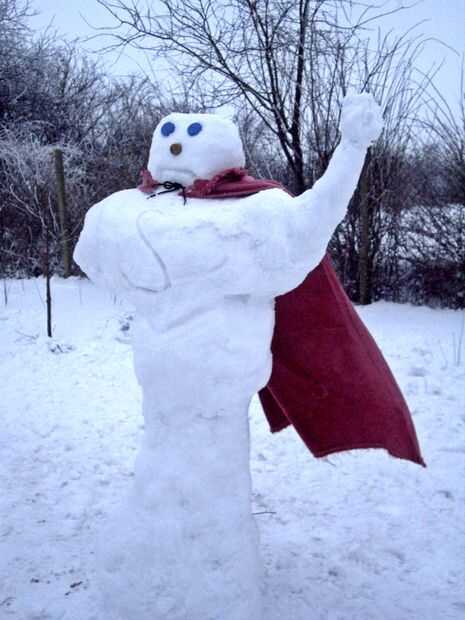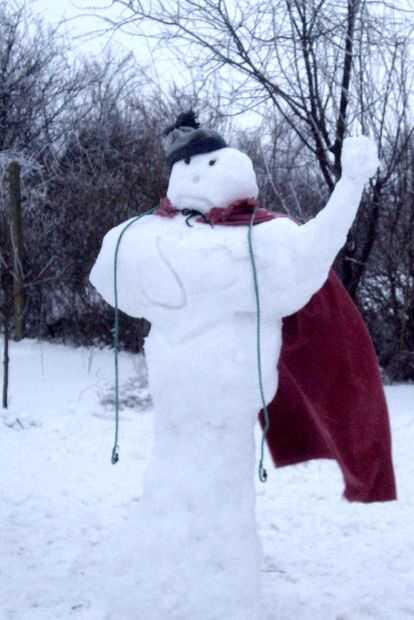Por último hacer la nariz, los ojos y una marca de S (para asegurar que todo el mundo que esto es una inusual nieve héroe ;), pone una capa roja y si quieres un sombrero o... para cortar cuento largo, simplemente decorar con lo que quieras.