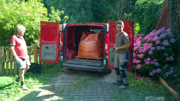 Concreto grande significa BIG bags de premezclado arena y grava. Más vinieron en una furgoneta, pero temprano en la mañana teníamos a pocos metros cúbicos más y así que tuve que empujar mi caballo rojo de trabajo caliente a su capacidad de carga.