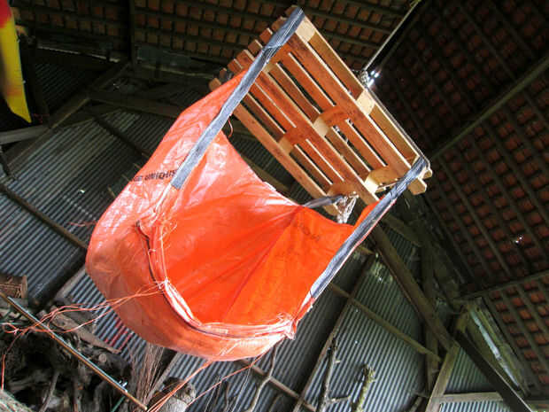 Bolsos grandes significa gran basura, aunque - tuve que cortarlos a vaciarlos bien - sí traté de colocar la bolsa a un árbol y moverse hacia adelante, pero como caballo de trabajo caliente rojo tiene sólo tracción, las ruedas se volvió casi gratis en el aire, extendiendo grava todo el mundo.