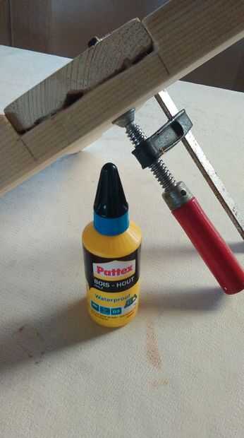 Realizar la conexión de madera más fuerte con el pegamento de madera. Poner sobre los tornillos de mano mientras se está secando el pegamento.
