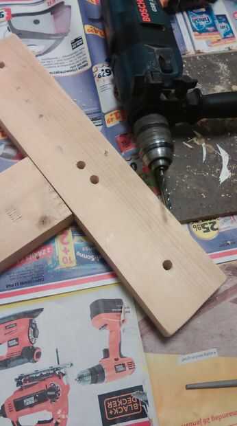 En la Junta más corta hace un agujero en el final. Con taladro extra hacen el agujero más grande, y esto hasta la mitad de la anchura. Este es el lugar donde se apriete el nudo.