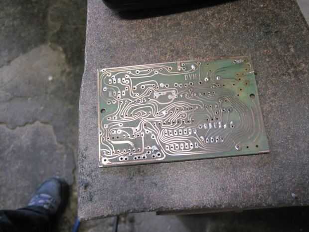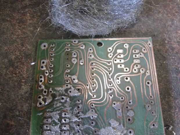 Frote suavemente y siga buscando en su trabajo; que desea quitar la capa de barniz de resina que cubre las pistas de metal. Por lo general, son cobre, pero en ocasiones son electrochapados en lata, que los hará ver plateado en vez de cobrizo. Conseguirá la bonita y brillante y verás que hace las líneas realmente se destacan.