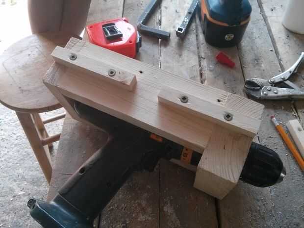 Las guías son simplemente dos 1/2 "x 1/2" piezas atornilladas y pegadas a cada lado, dejando una separación de 1 1/4" entre ellos. En la brecha une un 'wing' que era 2" de largo, otra vez atornillado y pegado. Es importante asegurarse de que son y recta como éstos guiarán la caja en los canales de la estructura. Te recomiendo lijar las esquinas ligeramente redondo para evitar que se captura.