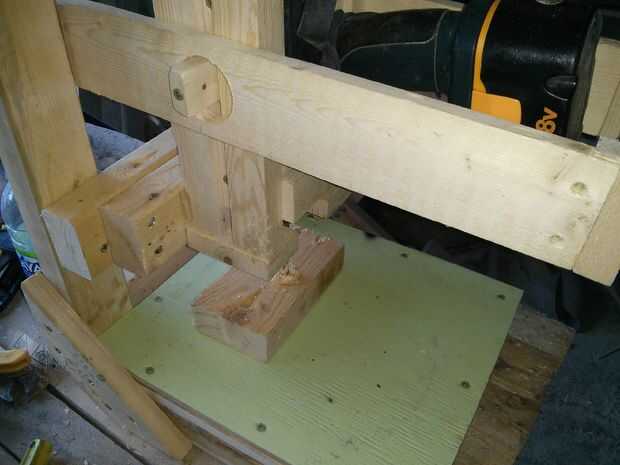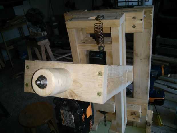 Es fácil colocar la palanca en el bastidor. Cuando el taladro está en su posición más superior, la palanca debe quedar en un ángulo de 15 grados. Ahora hubiera preferido usar los tornillos para montar la palanca a las verticales de la base, pero no cualquiera tener en la mano, así que sólo utilizar tornillos, utilizando los recortes de los agujeros de arandelas. Tengo la intención de sustituirlos en el futuro, sin embargo, si hay problemas con él, yo incluso no puedo molestar.