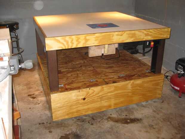 Para ubicar las palancas, añadí bloqueo bajo las leges hasta el tren de aterrizaje era relativamente llano. Entonces tenía la palanca en la posición vertical de 1" en el borde de 2 x 8. Esto me dio no sólo la posición del agujero en la palanca (centro de la anchura y 6 1/2" hacia arriba desde la parte inferior), pero también la ubicación del orificio en la estructura de la tabla de router. Taladré un agujero de 1/2" a través de las ubicaciones de nivel. Taladré un agujero de 3/4" a través de la tabla estructura... porque encontré algunos bujes de 3/4" con un 1/2 ID, que mantendría los pernos de gorgeo cabo pino 2 x 4 con el tiempo. Las palancas fueron Unidas con pernos de cabeza hexagonal 1/2", arandelas y tuercas.