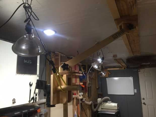 Para las luces tengo seis accesorios empotrados con los bulbos del reflector de LED de luz del día y luego ocho luces abrazadera de 8" del centro casa con bombillas de luz LED A19.