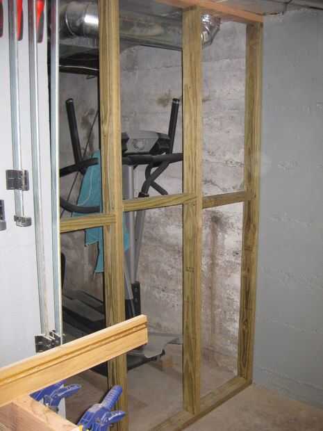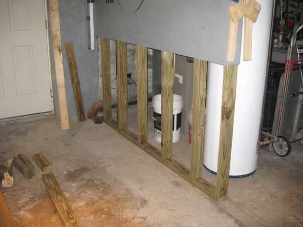 Ambos muros fueron construidos de madera tratada a presión y OSB. Utilicé tornillos en lugar de clavos y nada realmente está anclado al concreto. Hice esto para que si alguna vez vender y los nuevos propietarios no están en el mercado de un taller, puedo quitar las paredes rápido y fácilmente. Además, no me gusta taladrar agujeros en el piso de concreto y las paredes ya que crea una entrada fácil para el agua. Puesto que toda la madera fue cortada para caber, conectan perfectamente. Que en combinación con el OSB revestimiento hecho las paredes muy sólidas... no te muevas si empujas sobre ellos y no es portador.