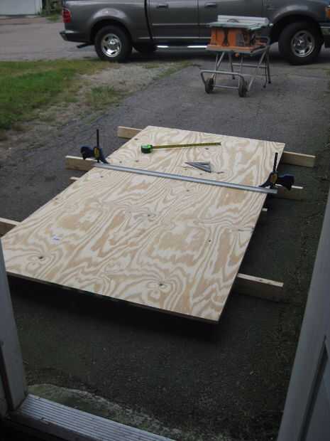 Como se mencionó, la melamina es asegurado desde abajo con un montón de tornillos... Yo era muy atento no atornillar hacia arriba a través de la parte superior de mi mesa. Con la tapa unida, quería cubrir los bordes expuestos porque eran feos y quería proteger la melamina de saltar. Decidí utilizar madera contrachapada de 3/4", así que corte las tiras en 4 1/2". Presenta los orificios de montaje, perforar agujeros piloto y luego perforados Avellanadores. Para asegurar que este canto fue al ras con la parte superior de la melamina, sujeta longitudes de madera colgante para la mesa. A continuación, sujeta el borde apretado en estas longitudes de madera contrachapada. Por último, tornillo ribete en 2 x 4.