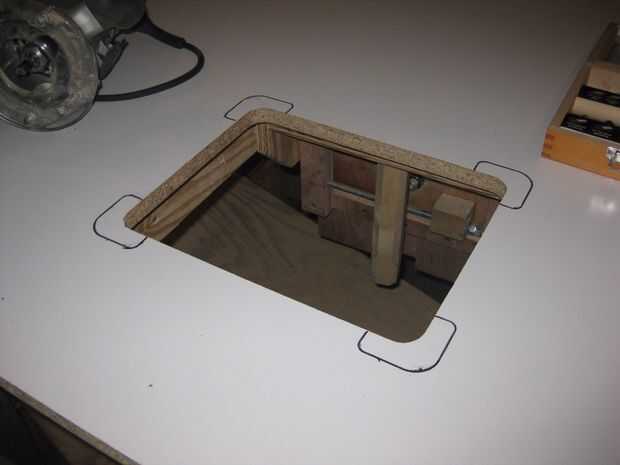 Problema #1: Lift diseño de deslizamiento router morderme en el culo otra vez... por lo que necesitaba para empotrar las esquinas nivelación. Me remonta las esquinas y quitado el material a mano alzada con un router.
