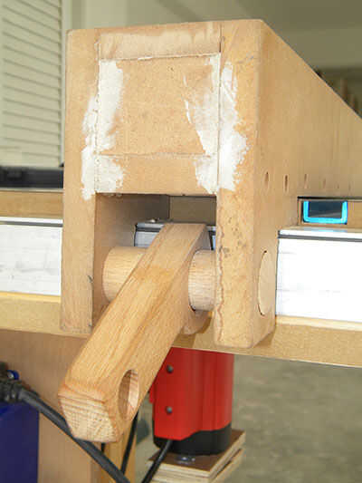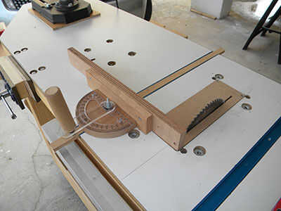 I montada una sierra circular debajo del Banco y sostenga con 4 pernos y tuercas de mariposa. Hice 4 agujeros en la circular vio base 3 de las cuales son alargadas para el ajuste fino. También cortar un espacio para insertar placas de 0 º a 45 º de separación y agregar 2 ranuras de inglete pista a la izquierda y derecha. La sierra circular es accionada por un interruptor de parada de seguridad y puede llevar a cabo una cuña también en la hoja (no mostrada aquí). Mi tope-guía de madera está hecho de cuerpo MDF y madera dura para la ronda 3/4 pedazo de centro y el centro de la manija; también un ángulo de aluminio se utiliza en la guía de tope. Su diseño se basa en cerca de Biesemeyer. Sitio izquierdo de la valla es utilizado para el ripeo con la sierra circular y el sitio adecuado se utiliza como la cerca del router con una abertura y agujero de polvo. La guía de tope es simple una 2 X 2" conectados por el lado de la banca y con un ángulo de aluminio a través de él para que no dañe la cerca del mecanismo de bloqueo 2 x 2" cuando se apriete. Una cinta UHMW se utiliza para ayudar a los ángulos de aluminio 2 para funcionar. Algunas varas para empujar también han encontrado camino allí en mi banco de herramienta. A pesar de que casi todo aquí es hecho en casa, la seguridad era siempre en mi mente antes de cualquier cosa. Mi calibrador de inglete es una idea mixta de varios diseños DIY (uno es de instructables Phil B). Barra de madera dura la pieza en la ranura de inglete de la vía, madera contrachapada para el cuerpo, un transportador transparente, una pieza de acrílico transparente gruesa y un mango de madera con un tornillo en la parte inferior para actuar como un mango atornillado y mantener todo firmemente en su lugar.