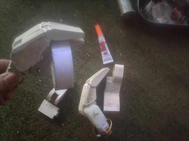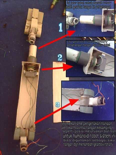 Hacer mano pared. E como a hecho un papercraft pero con diferentes materiales son agua tuberías de pvc. Cortar la placa de tubo en pequeñas piezas y la formación de un dedo y de mano. poner un motor en cada empalme, un motor para la rotación de la muñeca, 1 motor para levantar la mano y un motor para la rotación de la base del brazo. 3 dc motor caja de cambios para cada mano.