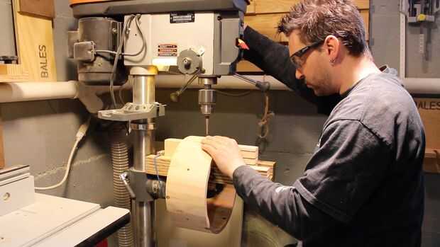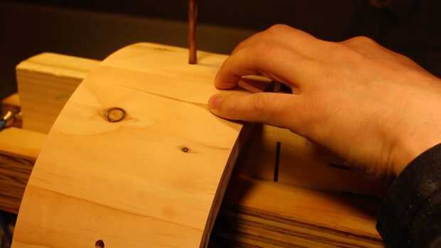 Estas líneas se extendieron hasta la cáscara, perpendicular a la arista, utilizando una combinación de cuadrados. El punto medio de cada línea de Zapata fue marcado con una escuadra de combinación y luego perforado con un 1/4" bits.