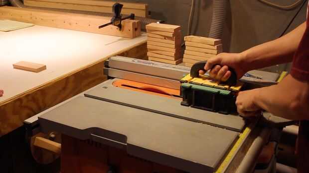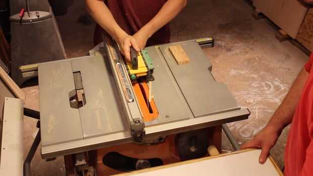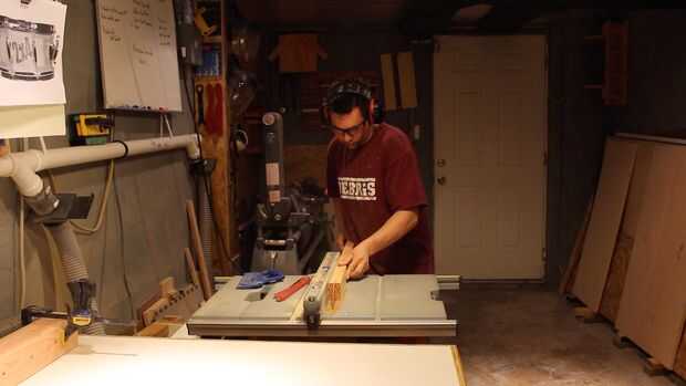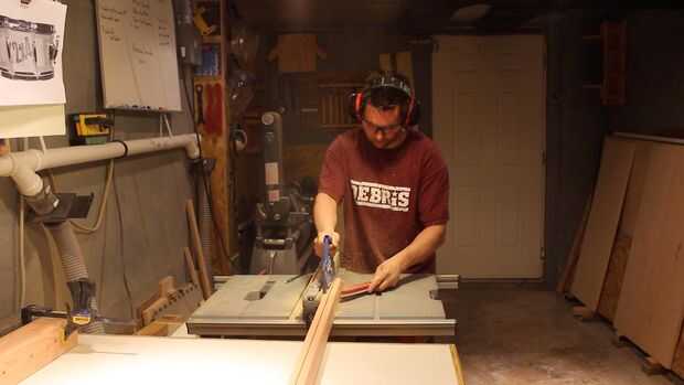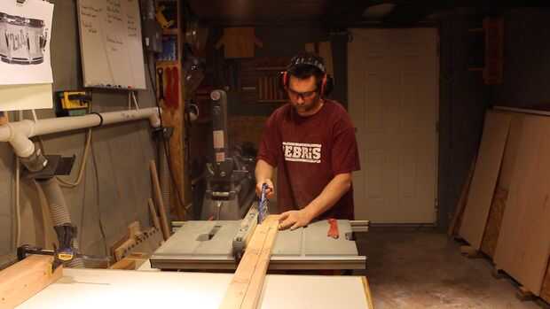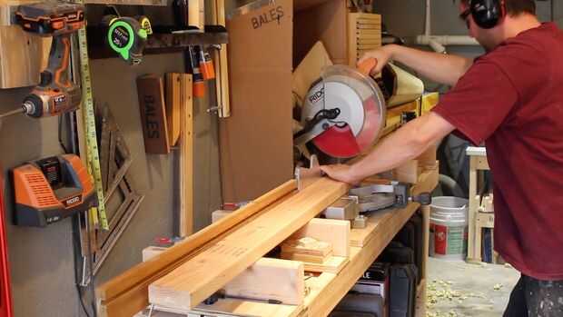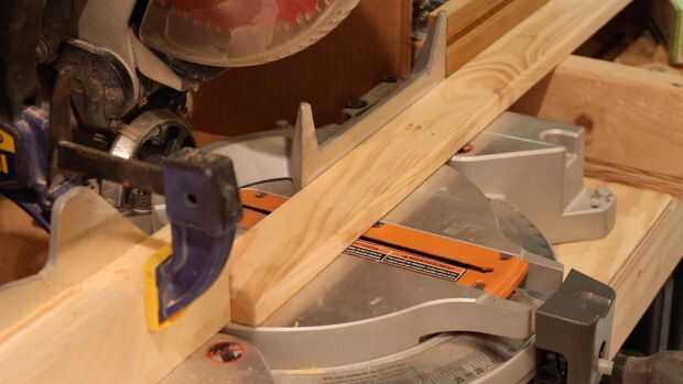 Puesto que el proyecto tuvo que venir de un solo 8 pies 2 x 4, conservación material era importante. La concha iba a ser 5" profundos y compuesto de 18 varas. Tomar material perdido a 8 cortes de cuchilla en cuenta, en primer lugar cortamos una longitud un poco más de 46 1/2".