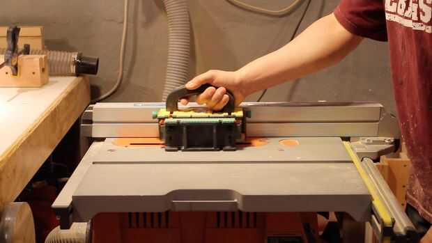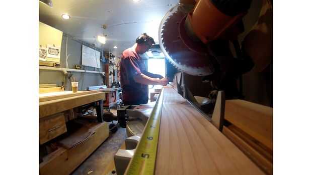 Esta sección fue ripeada en un ancho de 2" y luego volver a aserrado por la mitad con la Sierra de mesa, nos deja con 3/4" espesor stock (aproximadamente). Pentagramas individuales se redujeron a 5 1/4" longitud con la sierra ingletadora.