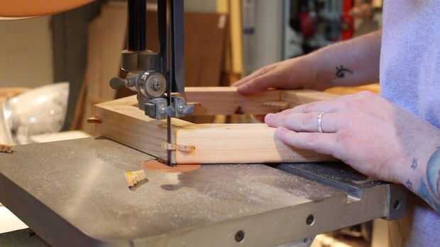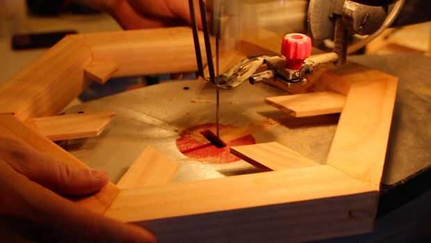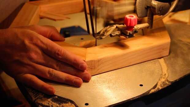 Una vez curado el pegamento, quitó el material de tira sobrante con la Sierra de cinta para Sierra de calar para el interior y el exterior.