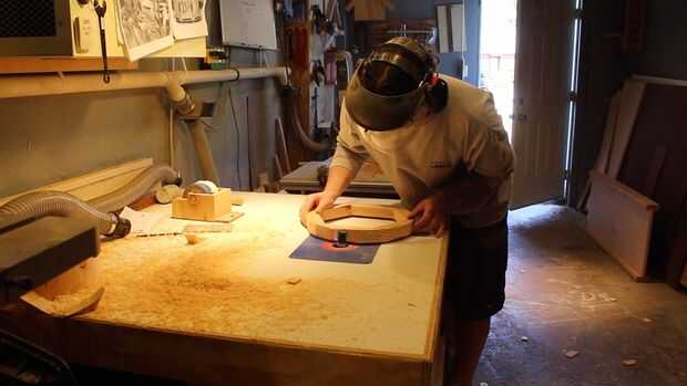 En caso que sea de interés, la plantilla de madera se hizo trazando un aro de madera real, fabricado por Yamaha, con una fresadora.