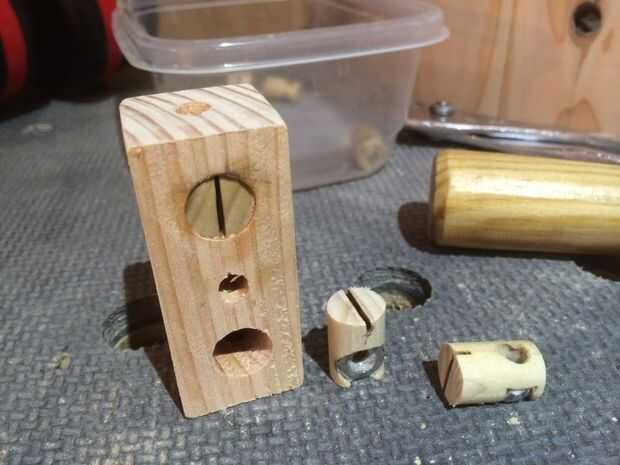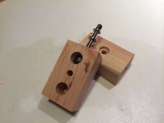 Sería la solución más fácil y mejor para tuercas de la varilla de tensión tuercas giratorias, pero eso es hardware de tambor... no realmente estándar de hardware. Para cumplir con las reglas del concurso, intentamos pegar las tuercas en cavidades dentro de las zapatas. Trabajó en la teoría, pero no soporta a ningún tipo de presión. Después del concurso, decidimos probar un método en muebles baratos avería... He visto como las tuercas de cañón. Secciones de pasador con tuerca integrada y una ranura para alinear con un destornillador. Esto también fue muy frustrante. Recomiendo usar tuercas giratorias... como hago si yo alguna vez volver a este diseño.