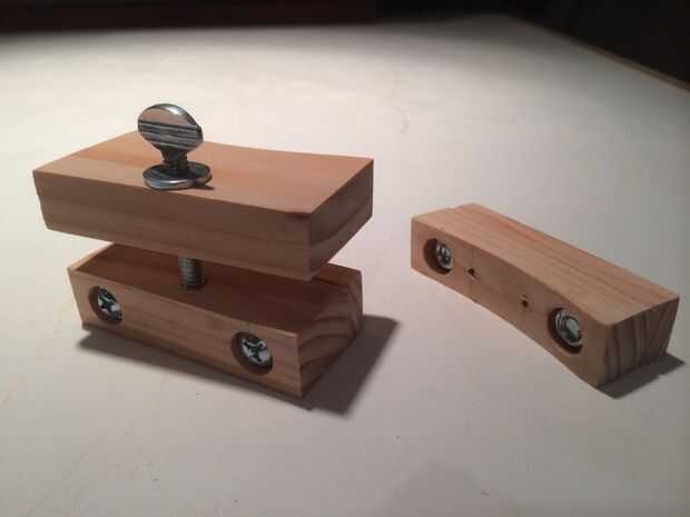 La sección inferior fue diseñada utilizando la dimensión de la sección superior. La mandíbula posterior tiene dos tuercas avellanadas ajustaron en su cara posterior. La mandíbula delantera tiene dos orificios avellanados para tornillos de cabeza, que reducen a los agujeros más pequeños para sólo el eje de los tornillos. Esto crea una abrazadera para las trampas de la tripa.