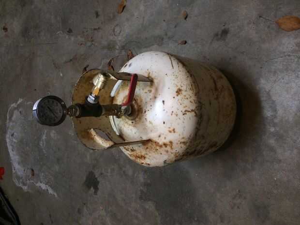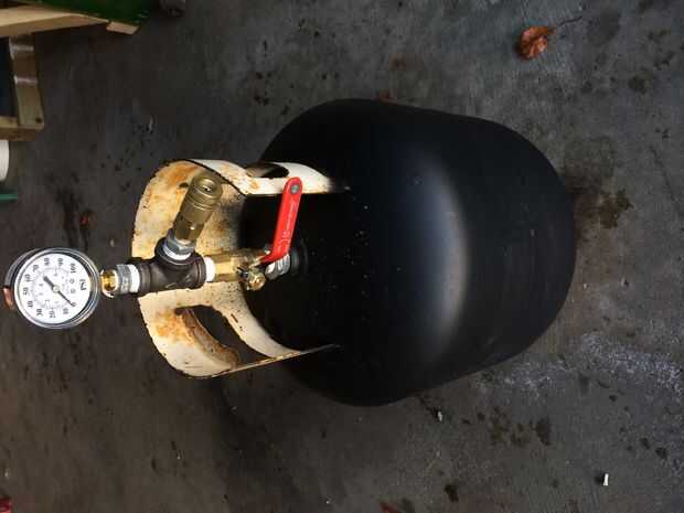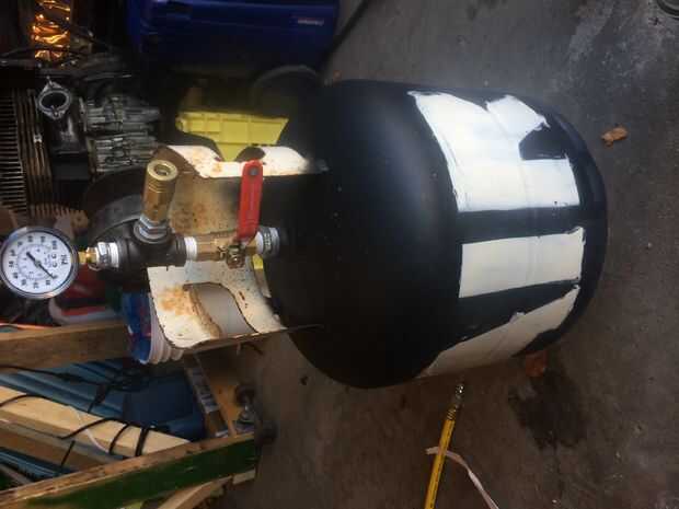 Ya que mi compresor de aire está a sólo 2 galones y im a pie para comprar una más grande, convertí un viejo tanque de gas propano en un tanque de aire.