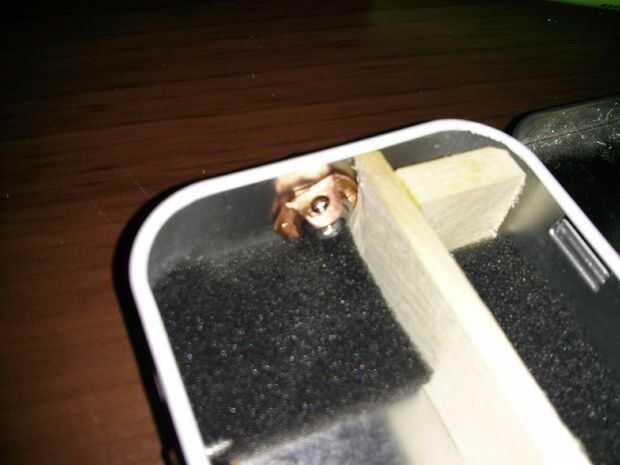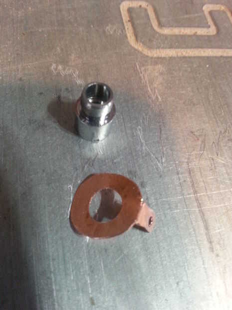 Luego necesitas crear un anillo de tierra. Puede utilizar una arandela y soldar el cable directamente a él, sin embargo algunos de mis láminas de cobre solía para crear arandela con una ficha. Puesto que la cavidad de la tardis es profunda, quería usar un conector de cable aislado en lugar de un duro de la soldadura de conexión para facilitar la extracción y mantenimiento.