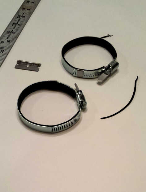 Corte una tira lo suficientemente larga para cubrir una mitad de la abrazadera - idealmente el lado que no "alimenta" a través del engranaje de gusano, si usted va a utilizar su Jar-esperanza, marca la segunda™ para frascos de varios tamaños. Yo originalmente tenía en ambos lados, pero entonces había eliminado de un lado y lo reemplazó con el exceso de material de una hoja de "pies de goma", como el tipo que le pones en la parte inferior de un tablero de corte de vidrio, por ejemplo. Si usted decide cubrir todo el interior de la abrazadera con la espuma, necesita dejar un espacio para el soporte justo enfrente el engranaje de gusano.