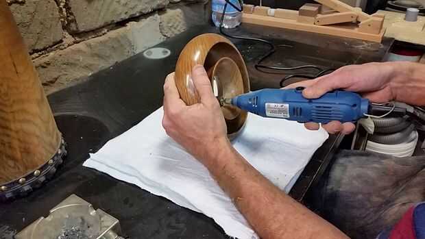 Bien, usted ha hecho esta lejos. El potencial de daño o una catástrofe acaba de dejar de 90% a 5% - 10%, dependiendo de sus habilidades de Dremel. Usando una broca de tambor de lijar pequeños cortar y suavizar la curva interior del Toro de membrana sobra y luego laboriosamente a mano arena el interior llanta de 80 a 1000. Es en este momento cambiar de opinión sobre el final, y arena el recipiente entero sobre con el papel de lija de grano 1000 para cortar el cera brillante acabado, dejando el recipiente con un acabado mate, que me parece mucho más rústico y terroso, un bonito contraste a la altamente evolucionado forma geométrica representada aquí.