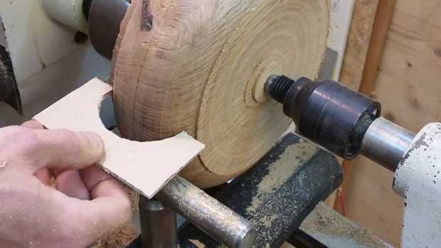 Usando su gubia del huso (o gubia de tazón de fuente, igual de Bellas) alrededor de las esquinas del espacio en blanco, en efecto creando un grano grande de la parte de nuestro espacio en blanco. Trabajar lentamente, comprobando a menudo con su plantilla para asegurarse de que usted mantenga la verdadera forma. Use el raspador de nariz chata para suavizar la transición entre las curvas, y una vez que su curva adapta la plantilla perfectamente, parada, o bien se llevará de su tazón de fuente de anchura total.
