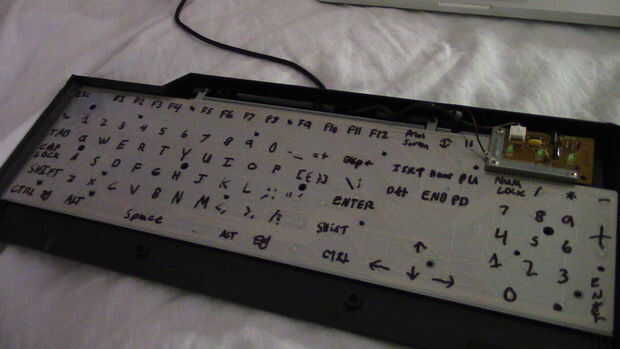 Conecte el teclado y comenzar cada "punto" con un rotulador de marcado. Para saber que "punto" es que clave, presione hacia abajo el punto. Cualquier letra, símbolo, número etc. demuestra para arriba en la pantalla es la clave. Asegúrese de que usted también etiqueta las claves secundarias.